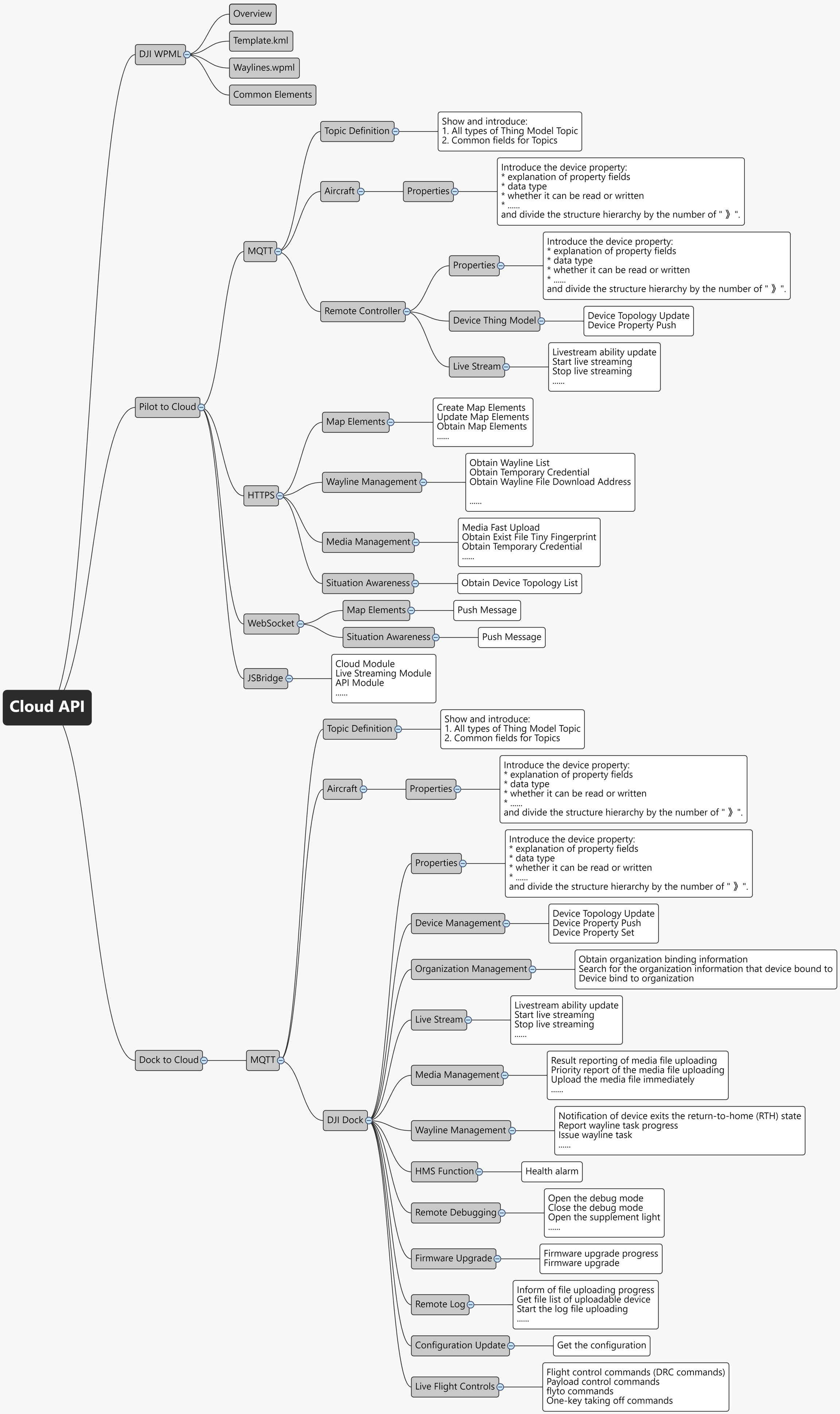 Server API (MQTT): Flight control commands (DRC commands) Payload control commands flyto commands One-key taking off commands