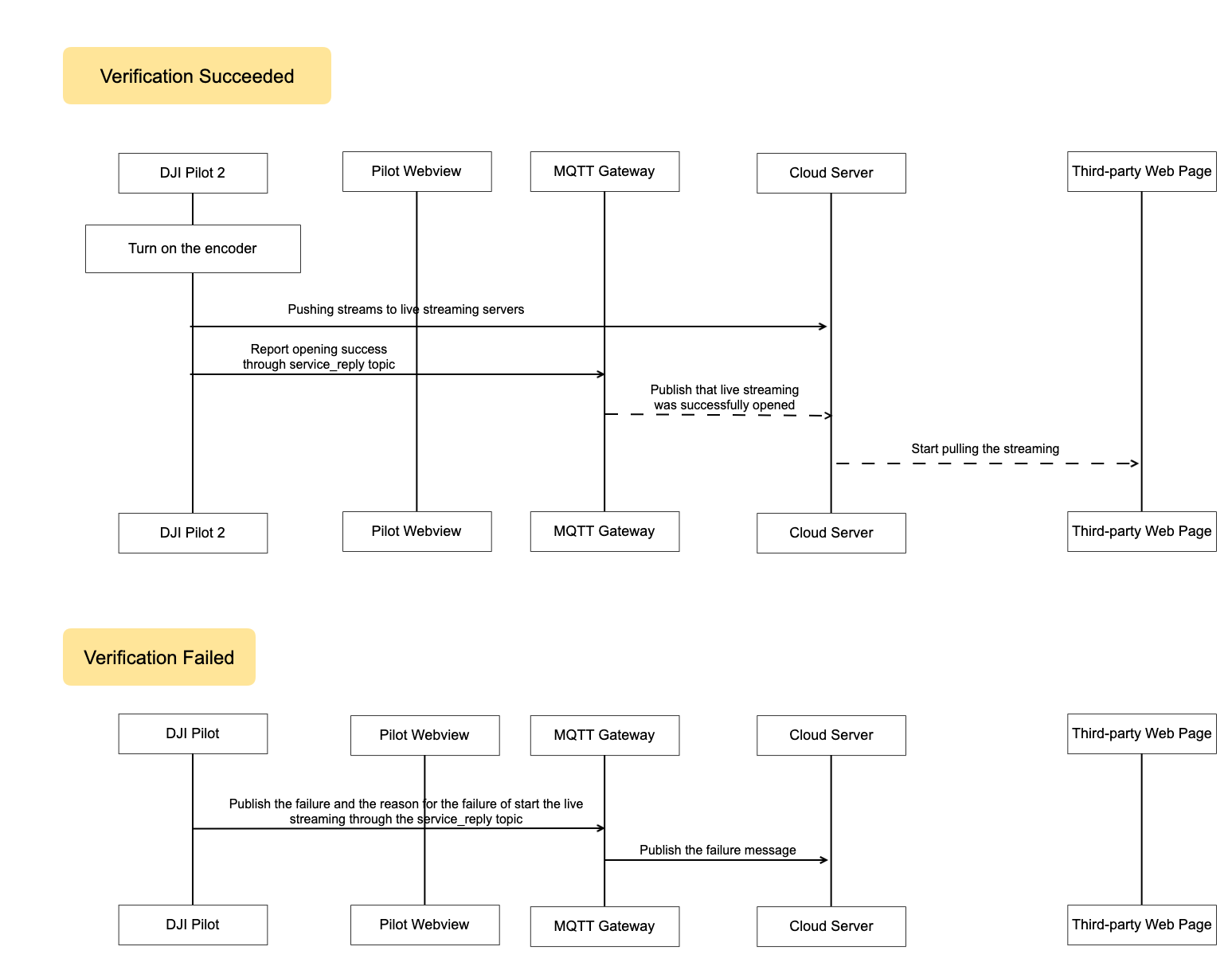 The tripartite cloud platform requires pre-deployment of MQTT and streaming media server. DJI's streaming protocol supports RTMP, RTSP, GB28181 and Agora. MQTT is mainly used for message communication, configuration information setting and reading.