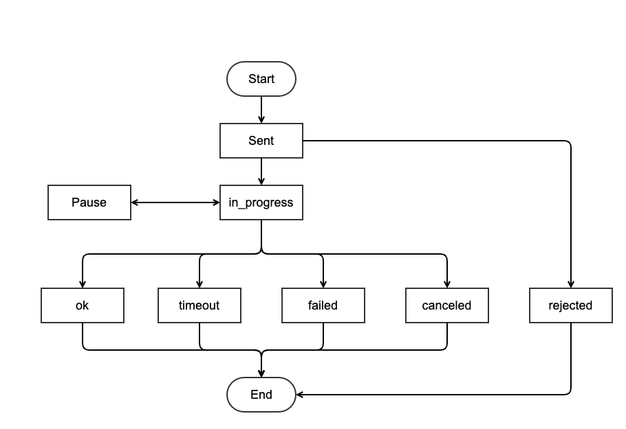 After the task (job) is issued, the device will return to the execution state. The status is defined in the "status" field of the transport protocol. The status is listed as follows: